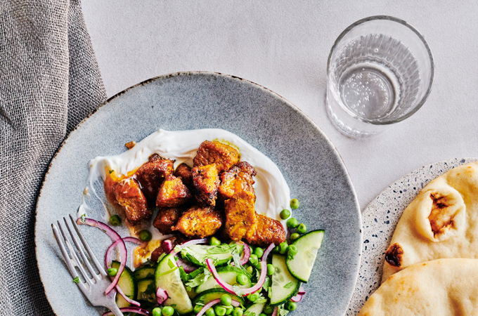 When looking to make tasty recipes on a budget, pork tenderloin is a cut you can rely on. In this recipe, chop it into cubes and coat them in spices before cooking. When ready, pour over a simple sauce made from mango chutney and lime juice. Pair it with a green pea and cucumber salad, and you’ve got the perfect weekday meal on your hands.
